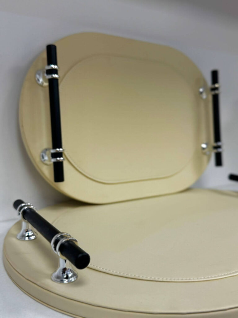 Apportez une touche de sophistication à votre intérieur avec ce superbe set de deux plateaux en finition beige.